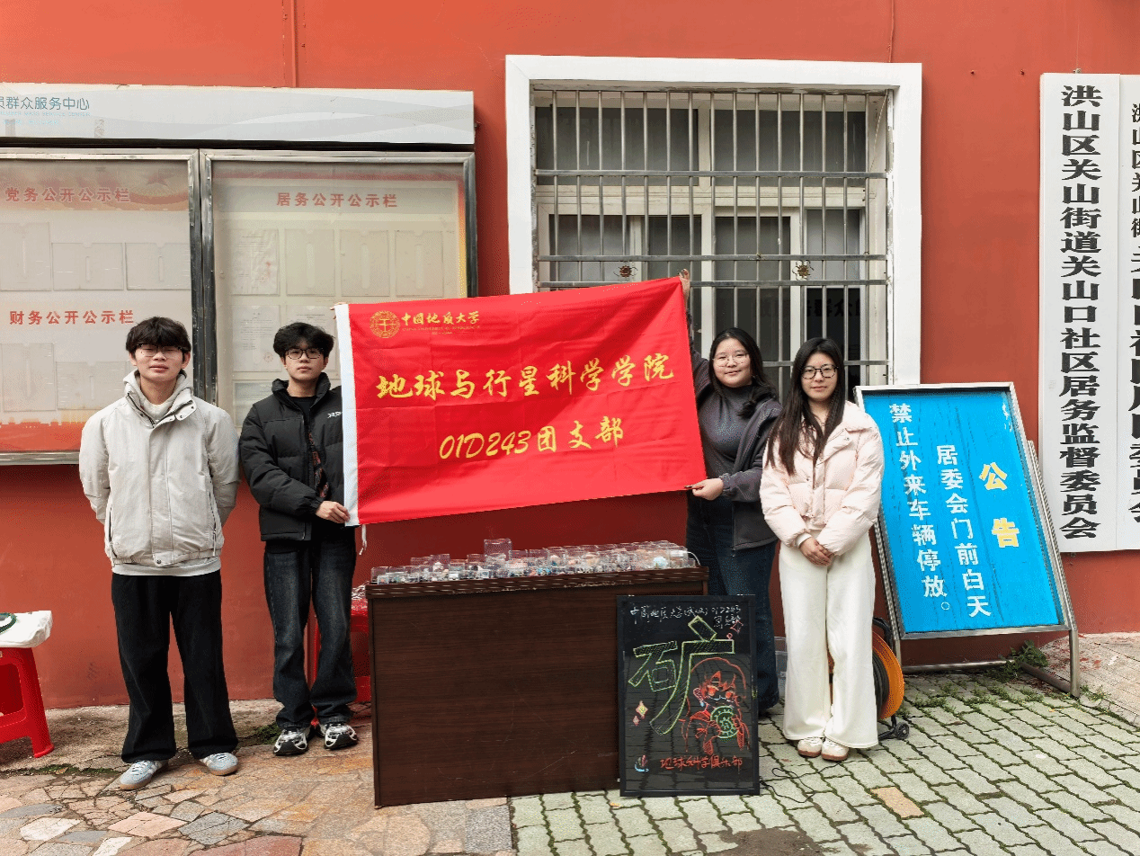 3月21日,01D243团支部以“学雷锋志愿服务月”为契机,走进洪山区关山口社区广场,开展地学科普志愿服务活动。志愿者们精心准备水晶、玛瑙、...