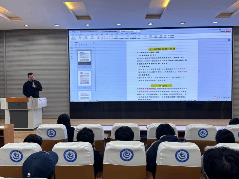 会议最后,阿迪力结合学校规定,再次明确了离校、课程请假及校外住宿的流程要求。他特别提醒:“规矩不是为难大家,是为了保护每一个人。”面对繁杂的学业和学生工作,他还贴心地分享了四个实用工作习惯,帮助学生骨干提高效率、减轻负担。此外,阿迪力带领全体骨干学习了网络安全与行为规范相关的警示案例,强调:“骨干要带头守好网络底线,也要做好班级同学的安全提醒。”