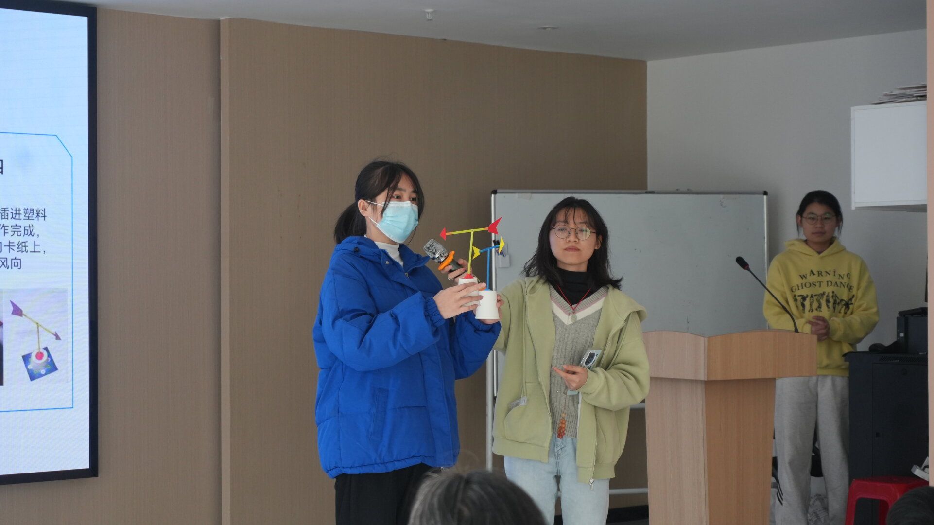 “风向标要怎么才能准确指示风向?”“纸杯底座要固定多牢才不会倒?”志愿者们先以简单易懂的演示,拆解风向标制作的核心原理,再手把手指导孩子们一步步操作。