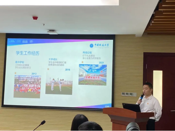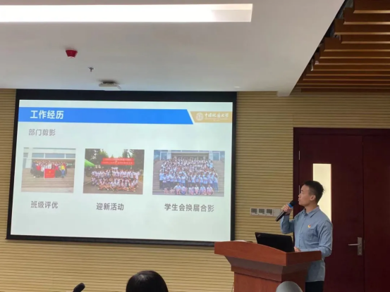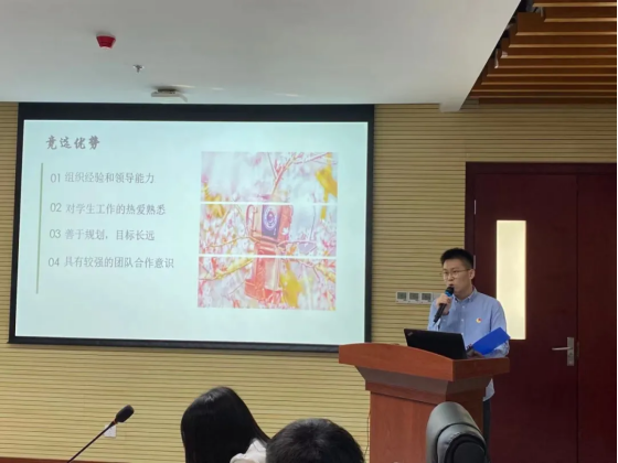 随后,进入候选人竞选答辩阶段。按照抽签顺序,各候选人依次进行竞选答辩,从自我介绍、工作经历、岗位认知、竞选优势和未来工作计划等方面进行展示和陈述。