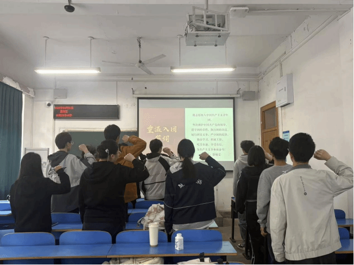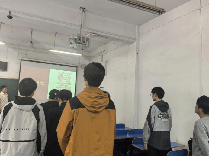 活动伊始,团支部书记刘元明带领全体团员齐唱团歌。嘹亮的歌声回荡在教室,为主题团日拉开序幕。