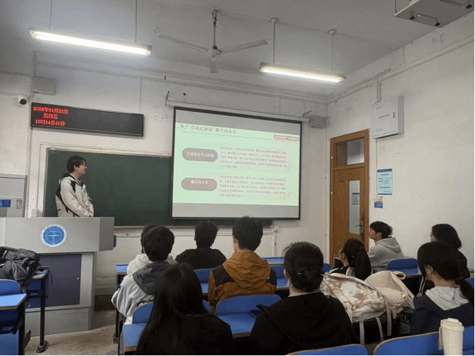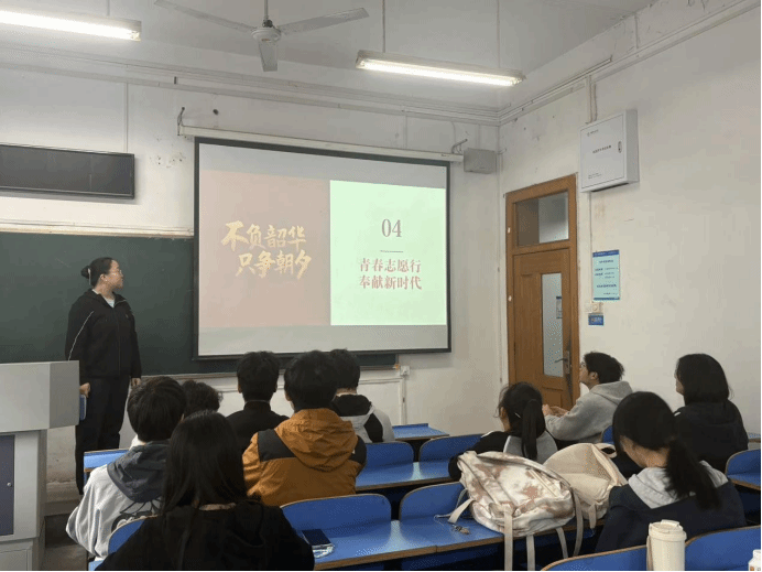 最后,田雨昕同学围绕“青春志愿行,奉献新时代”展开分享,倡导团员青年践行志愿精神,以微光汇聚星河。活动中,大家共同回顾支部四月参与地大社区志愿服务的点滴:周末走进东区学海楼,巡查居民楼安全隐患,清扫教室卫生,整理档案笔记……