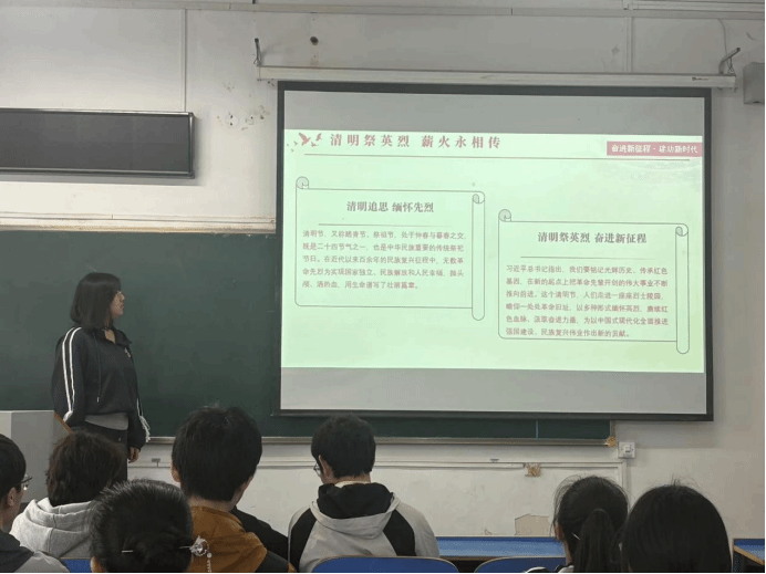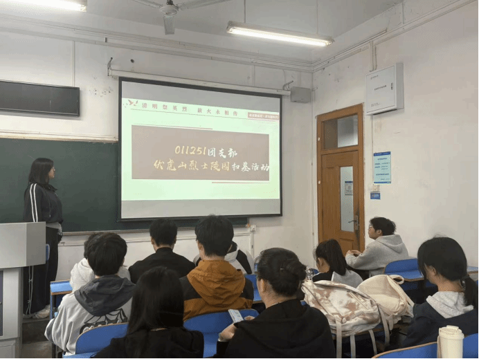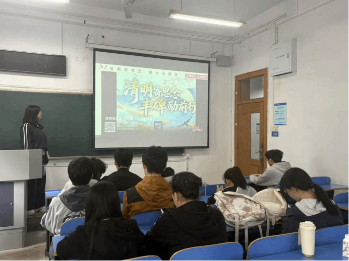 接着,董嫣然同学带领大家走进“清明祭英烈,薪火永相传”主题学习,详细讲解清明节的文化内涵,深入传达总书记“铭记光辉历史,传承红色基因”的重要指示。团员们共同回顾了4月4日支部赴伏虎山烈士陵园扫墓的实践经历,观看“清明祭思念,丰碑励前行”主题视频,在缅怀革命先辈中感悟红色精神,坚定传承红色血脉、接续奋斗的理想信念。