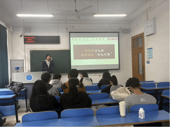 4月22日上午,011251团支部在实验课后于教一楼107顺利开展“国家安全 青春挺膺”四月主题团日活动。本次活动创新采用“翻转团日”形式,由推优入党同学牵头主持,打破传统单向宣讲模式,有效激发团员参与热情,让思想学习更鲜活、更入心。