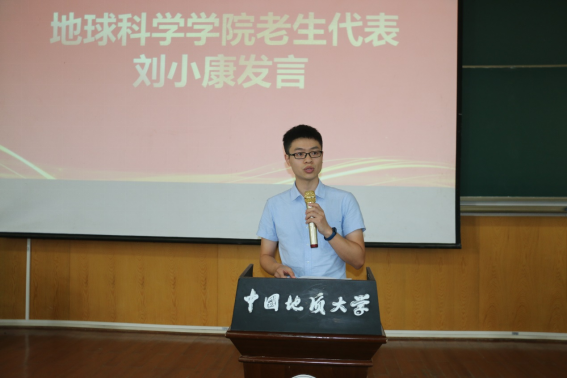 高年级学生代表、2020级博士生刘小康同学将自己7年的地大经历娓娓道来。他表示得益于学院的导师制,他在大二时就跟随导师开展科研工作,积累起对地质的浓厚兴趣。他希望新生们敢于创新,直面困难,乘风破浪,学有所成。