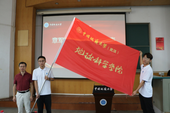 殷鸿福院士将象征着地质人的“三大件”以及地质包授予新生代表,并逐一向新生们介绍了用法和内涵,传承独属于地质人的使命。随后,周刚书记向新生代表赠《温家宝地质笔记》,章军锋院长向新生代表授韦德官方网站院旗。全体新生宣誓,犹如一次新老地质人之间使命的传承,意味着每一位新生从此多了一个名字:地院人。