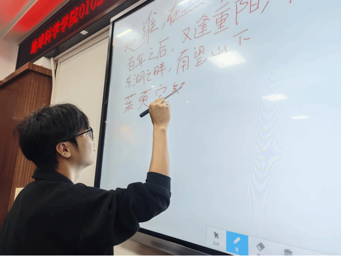 最后,“同写十四行诗”成为全场情感与思想的聚焦点。31名团员以笔为媒,共谱青春赞歌,滕笑丽老师则为诗歌收尾点睛,让“明志强国,共续传统”的主题在诗意中落地生根。团员们在协作中深化对传统与使命的理解,将家国情怀、传统文化、青年使命与地质学子身份紧密融合。