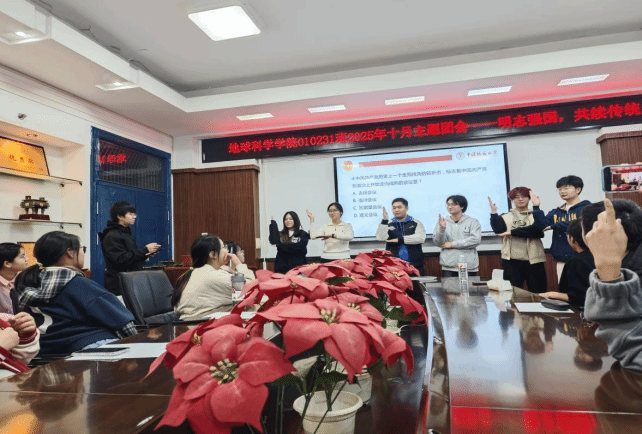 学院团委书记滕笑丽老师鼓励团员们将本次团会收获转化为行动,以地质学子的坚韧与共青团员的热忱,持续传承传统、践行使命担当,为强国建设贡献青春力量。