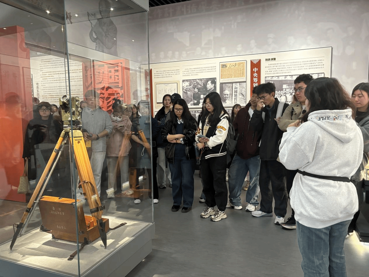 活动分为校史学习与学生廉洁作品观展两大环节。在校史展区,学员们在讲解员带领下,通过泛黄的史料照片、承载岁月的实物展品,系统回顾了学校从建校初期服务国家地质事业,到新时代在学科建设、科研创新、人才培养等领域的发展历程。老一辈地大人扎根山野、踏遍山河的勘探足迹,以及在资源勘查、环境保护等领域的贡献,让学员们深刻感悟“艰苦朴素、求真务实”的校训精神。