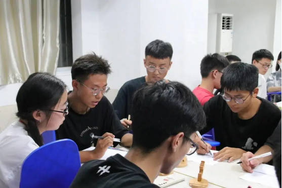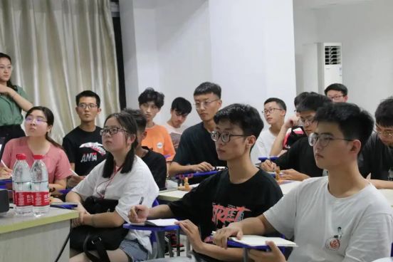 通过第一轮的笔试考核,共有28 名同学进入到下一轮的面试环节——无领导小组讨论,28 名同学被分为四个小组,分别于2021 年9 月 8 日晚上19:00 及19:30 在工程楼312 及 315 会场开始面试。同学们签到后抽签决定发言顺序,派一名同学抽取试题,并有五分钟的时间自我审题思考,然后按照顺序依次发言自己的观点,每人限时两分钟,最后通过十五分钟的组内讨论,派一名代表进行三分钟的总结发言。