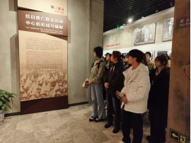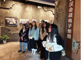 步履不停,此行第二站是八路军武汉办事处旧址纪念馆。跟随讲解员的脚步,同学们对武汉地区轰轰烈烈的抗日救亡运动和悲壮惨烈的武汉保卫战有了更加深入地理解,感受到抗日战争进程中中国人民视死如归、宁死不屈的民族气节,不畏强暴、血战到底的民族气概和百折不挠、坚韧不拔的必胜信念。