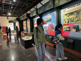 伴随微风,师生来到此行的第一站——武汉二七纪念馆。在参观过程中,同学们认真学习“二七”革命斗争,深刻感悟革命年间工人运动的历史和现实意义。中国共产党领导的二七革命斗争充分展现了中国工人阶级坚定的革命性和坚强的战斗力,二七精神并不是铁路工人的专有名词,而是无数中华儿女的血脉传承,更是激励青年学习砥砺前行的动力。