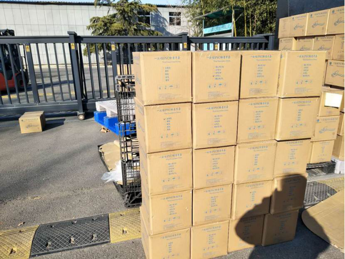 由于武汉地区防疫物资紧缺,外地校友开始通过各种渠道联系学校公示的紧缺物资。最终,山东淄博的2016届校友田文冀提供了可以直接购买医用手套和医用口罩的信息。于是,心理研究所杨琴老师立即在群内发出筹款倡议。同时,田文冀和她同届校友们先行垫付了资金,敲定了20箱医用手套(2万只)和1万个医用口罩。2月8日,田文冀在跟社区领导反复沟通后,获得一张出门条。她开车只身前往手套厂,搬运了20箱医用手套。又赶在下班前,前往可以发快递的邮政部门,当天向学校寄出了医用手套。