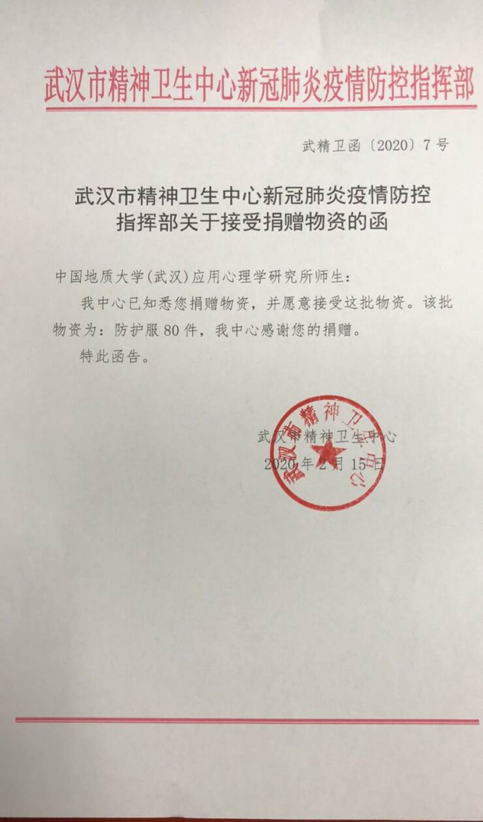 (通讯员杨琴)当获悉母校地大社区在这场严峻的新冠肺炎疫情中出现了多名确诊者和疑似者,当从新闻报道得知中国地质大学(武汉)附属武汉心理医院(武汉市精神卫生中心)出现了医护人员被感染,各方都在向社会发出求助信息时,心理学专业的校友们心急如焚,想为母校做些什么。疫情面前,他们在积极参加抗“疫”的同时,心存大爱,没有忘记培养自己的母校和共同培养自己的中国地质大学(武汉)附属武汉心理医院,因为许多研究生的导师是武汉心理医院的专家,部分校友曾在医院进行临床实习,他们把武汉心理医院作为了自己的第二母校。校友们通过QQ群不断讨论,如何能帮助身处疫情险境中的母校。他们的想法,得到应用心理学研究所师生们的支持。