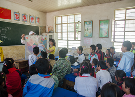 老师”。李佳仪同学和林茜苇同学给孩子们讲解了世界地理和中国地理,孩子们听得非常认真,大声而整齐的回答着她们的提问;在课间活动中,我们组织了孩子们玩“捕鱼”游戏和篮球游戏,他们紧紧牵着大哥哥大姐姐们的手,在午后灿烂的阳光下快乐地奔跑,大声的欢笑,游戏结束后,每个孩子都挑选了自己喜欢的来自地大同学捐送的小礼物;接着,韦洁同学给孩子们介绍了日本的动漫文化,陈雪晴同学带着大家做了“会跳动的小球”科学实验,孩子们平时接触不到科学实验之类的课程,一张张小脸上写满了好奇和兴奋;最后由孔振兴同学给孩子们讲了乒乓球知识,还让大家推选了乒乓球打的最棒的小朋友。
