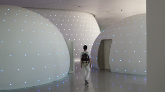 这些创意满满的球状建筑是名为“五福降中天”的会议室。小一点的有员工睡眠室,工作累了还可以美美地睡上一觉,据杨增奎学长介绍里面设施齐全,配备按摩椅等;还有母婴室和女士员工休息室,专供女性员工使用。