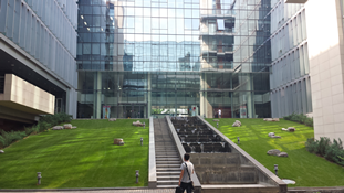 瞧!这是员工休息场所的入口,叮咚的流水,碧绿的青草给工作生活平添了几分乐趣呢!在这里工作一定很惬意吧~