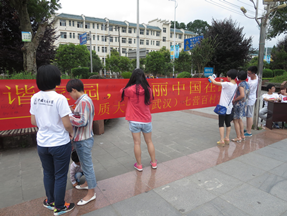 (通讯员:张蝶)2015年7月18日,中国地质大学(武汉)信息工程学院党建办公室社会实践团(以下简称信工党建办)早上8:30从学校出发,前往中山公园内部的受降堂进行参观学习,并进行问卷发放调查,开始了今天的旅程。