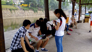 参观完受降堂后,团队成员开始在公园中发放调查问卷,他们被拒绝过,被认为目的不纯、被质问做这件事是否有意义、与思想偏激的人辩驳过,但面对这些困难团队成员始终不放弃,奋勇向前,使越来越多的人愿意填写问卷,还有人主动咨询。
