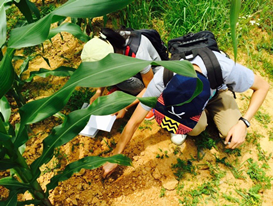 2015年7月10日,恩施利川分队出发。在熟悉了当地的风土人情之后,恩施利川分队分发问卷时受到了当地民众的热心填答。当地农贸市场很多摊位的老板对该队工作给予了肯定,同时也详细的说明了蔬菜等作物的产地。据此,该队成员划定了三个采样地点:柏杨镇、团堡镇、汪营镇。在柏杨镇政府相关人员的护送和指点下,采集了烟草、豆角、玉米、辣椒等作物样本,白菜因无法出售腐烂在地里,没能采集。不仅如此,还采集了成品食物——柏杨镇闻名全国的豆干——作为样本。科协的廖春林副主席很配合该组成员的实践工作,“不仅给我们提供了几个建议走访的采样地点,也表示了科协在重金属方面的宣传不足。他还给我们留下了联系方式,希望可以得到我们最后的问卷数据和调查结果,以便用于之后的宣传。”该组组长朱敏颖表示。