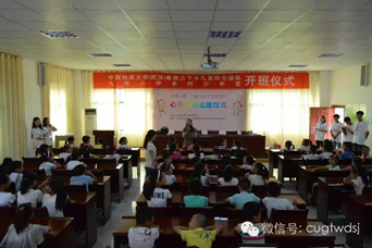 (通讯员 孙慧姿 张琪 刘笑然)2015年7月6日,韦德官方网站暑期三下乡九里阳光团队艺术支教开班仪式在湖北省宜昌市秭归县茅坪镇九里小学乡村少年宫活力开幕。九里小学副校长苏玉蓉、艺术与传媒学院九里阳光团队16名成员及66名九里小学学生集聚于此。在湖北省妇联、秭归县妇联、中国地质大学和九里小学乡村少年宫的支持下,九里阳光团队已在九里小学进行艺术支教五个年头,“一夏飞扬艺媒梦,五载长系秭归情”的口号寄托了团队的秭归艺术情结。