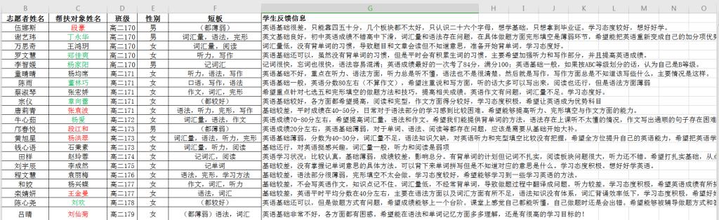 社会实践团队坚持精准施策的原则,将满足帮扶学生的实际需求作为工作导向,团队成员提前了解学校英语教学进度和教学特点,逐一联系自己的帮扶学生,晓学情、明校情、摸学情,了解学习短板,收集帮扶学生的学业情况,掌握学生的帮扶需求,将收集的信息整理存档,作为教学备课重要依据,为后续开展具体的教学工作打下良好基础。
