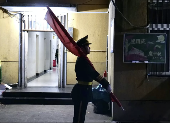 “说实话,很枯躁,也很累。”周佳贺的语气很严肃,“包括我在内的所有人,大家都是在为能亲自升上国旗的那一刻在咬牙坚持。中途有的队员身体实在坚持不了,有的课业有冲突选择放弃了,这样的事情每一届都在发生,但永远记得,刚入队时学长学姐对我们说的话,他们说,你们看看那些远处的高楼,再听听身旁的鸟鸣,你就会发现,六点种的地大操场只有我们在训练。我当时就觉得,这是多么美好的画面啊。他们说,这是独属于我们国旗班的一份浪漫!”
