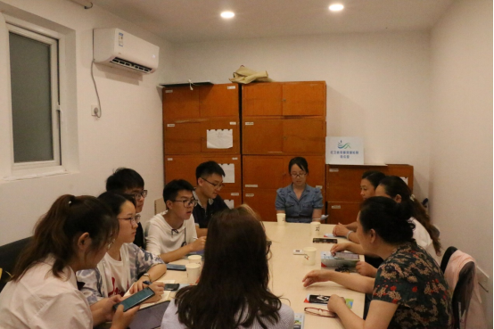 在红卫路街道河湖长制办公室,实践团与青山区和街道河湖长进行座谈,了解社区基层如何落实“长江大保护”战略。康苑社区党委书记、社区级河长董海琴介绍了河湖长的工作内容,碧园社区党委书记、社区级河长熊伟表示,长江美丽生态离不开全民共建,当代大学生应当多宣传多参与“长江大保护”。