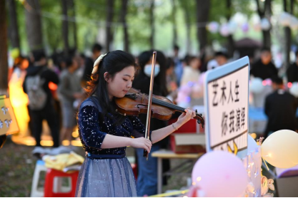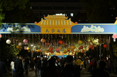 在院士长廊前,舞龙、舞蹈、汉服秀等精彩节目轮番上演;社团集市摊点前,灯谜、投壶、蹴鞠等互动项目热闹非凡;丛林深处,风格各异的造型景观让人目不暇接。灯火璀璨的夜晚,无尽的人潮涌动,处处载歌载舞、欢声笑语,在灯与影的交相辉映下,校园里呈现出一派欣欣向荣的景象。“好久没有参加过这样盛大的活动了,这才是大学校园生活应该有的样子!”同学们纷纷感慨道。