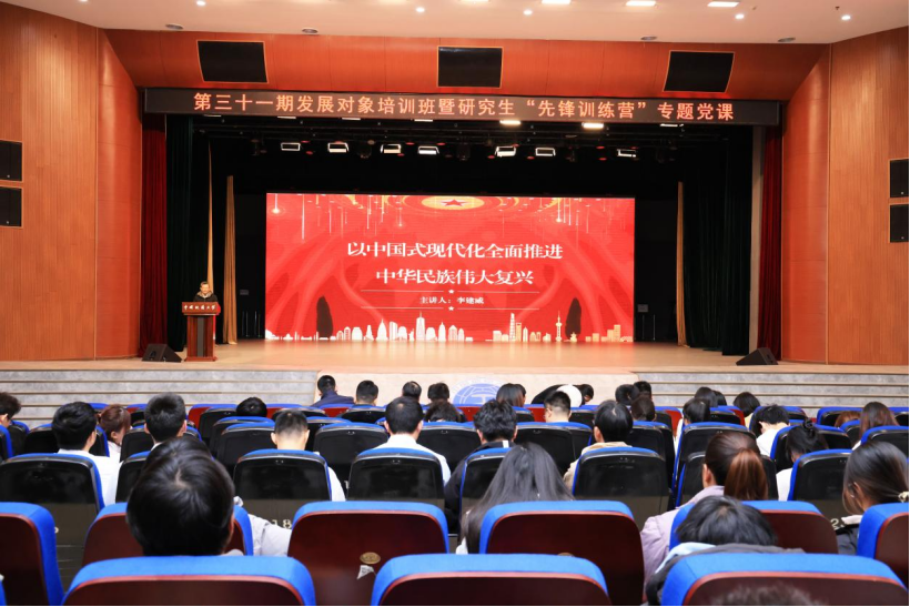 (通讯员:潘霏霏 陈文婷 摄影:孙彦钦 李佩瑶)12月16日,第十二期“青年马克思主义者培养工程”攀登班举行开班仪式,副校长李建威为第十二期“青年马克思主义者培养工程”攀登班、第三十一期发展对象培训班及研究生“先锋训练营”学员讲授专题党课。教育部直属高校党建工作联络员谢守成,党委常委、党委组织部部长、党委党校常务副校长陈文武,党委组织部、党委研工部、校团委负责人及第十二期“青马工程”攀登班理论导师和辅导员参会。校团委书记朱丹主持会议。