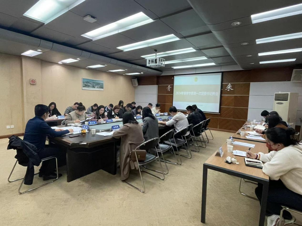3月12日上午,校团委2024年度工作布置会暨新学期第1次分团委书记例会在南望山校区大学生活动中心青年之家会议室召开。校团委书记班子成员、各科室负责人及各二级团组织负责人参会。会议由校团委书记朱丹主持。