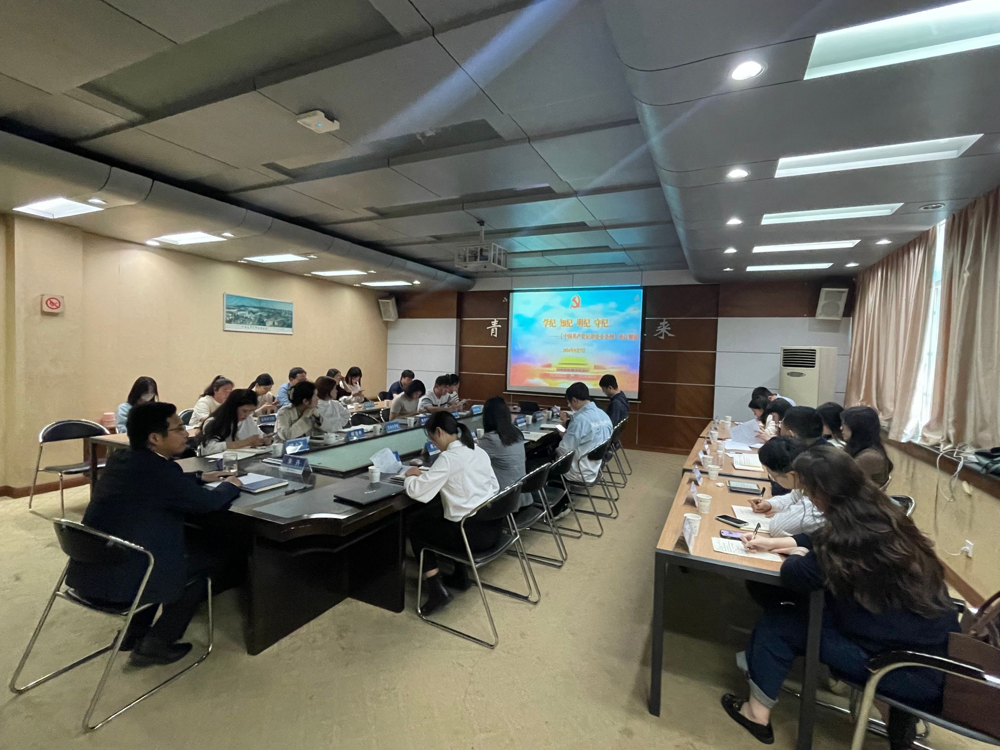 (通讯员:李想 陈文婷 摄影:李想)为深入学习习近平总书记关于党纪学习教育的重要讲话和重要指示精神,贯彻落实学校关于开展党纪学习教育的工作部署,5月7日,校团委在大学生活动中心青年之家会议室,举办了校院两级专职团干党纪学习教育专题学习。校团委书记朱丹,副书记郭小玉、刘明辉,团委各科室工作人员及全体二级团组织负责人参与学习。